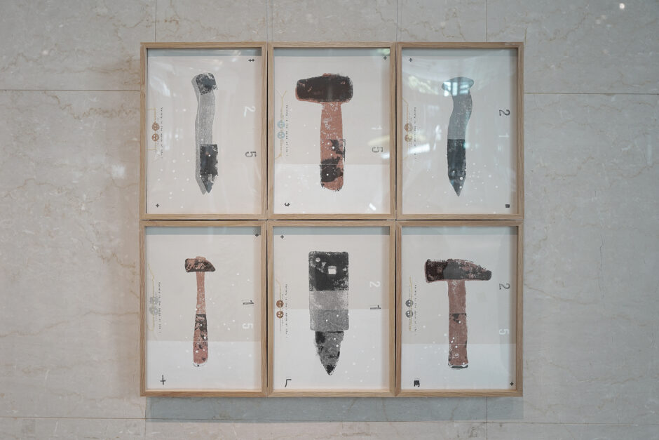 現在、表現手法の中心とはなっておりませんが、私の創作の根っこはいまだに「工藝」だと感じており、その「魂」が常に心の拠り所となっています。この度、そんな工藝仲間より機会を頂き、工藝の「魂」を象徴するモノの一つでもある「道具」をモチーフとしてビジュアルワークを制作。出展造形作家62名中、唯一の紙素材にて小品展に参加させて頂きました。懐の広い仲間達に感謝!