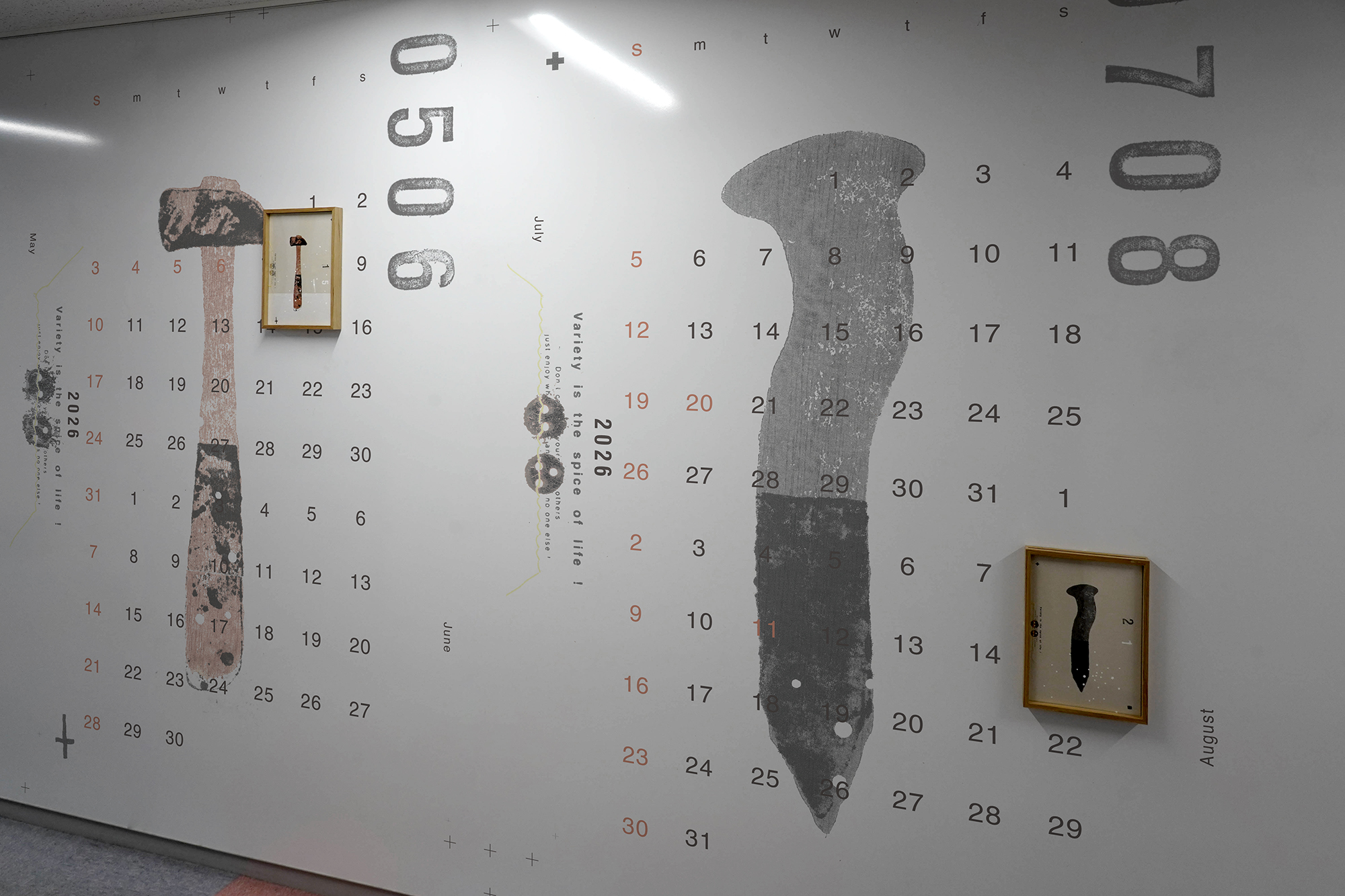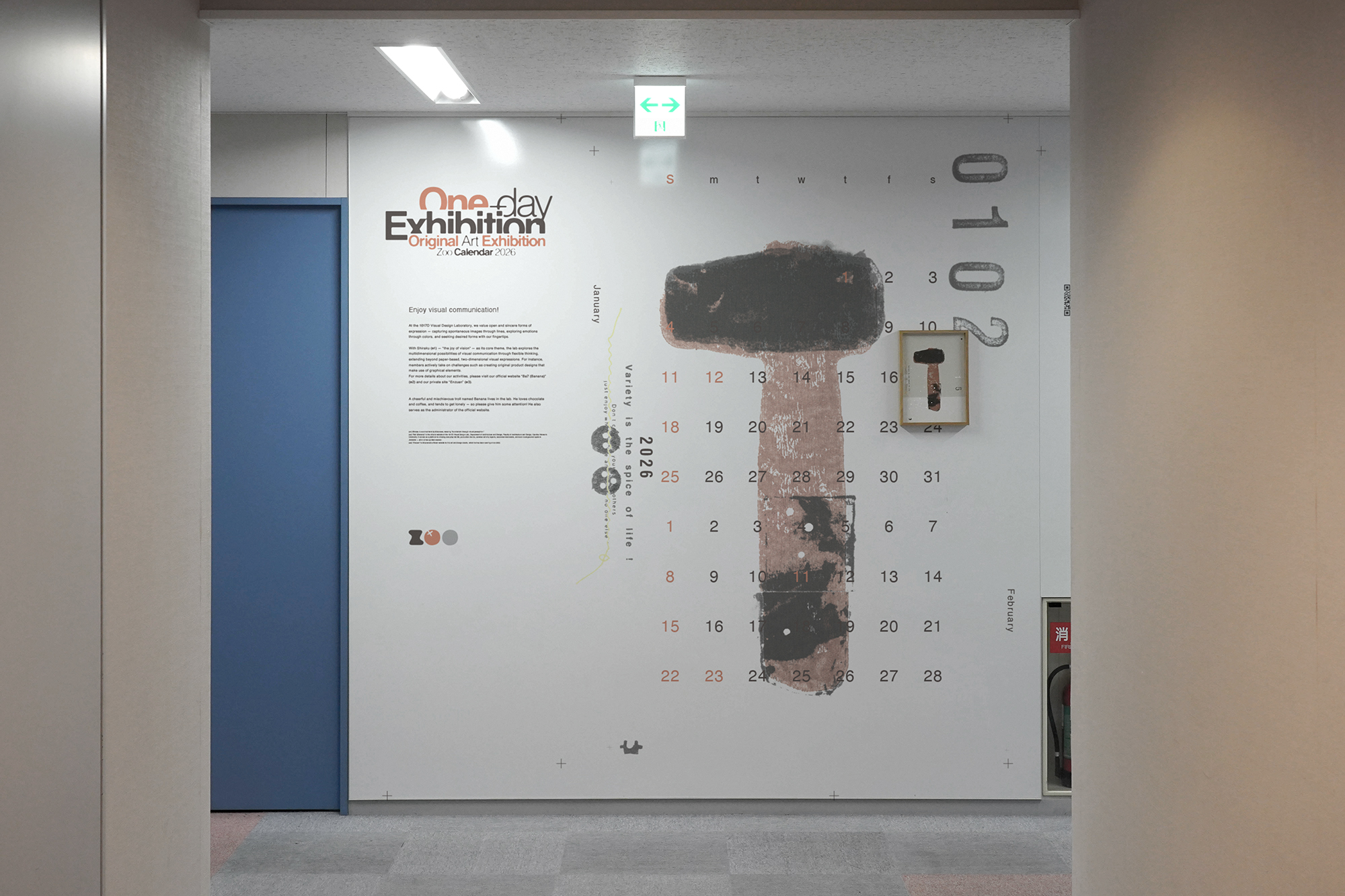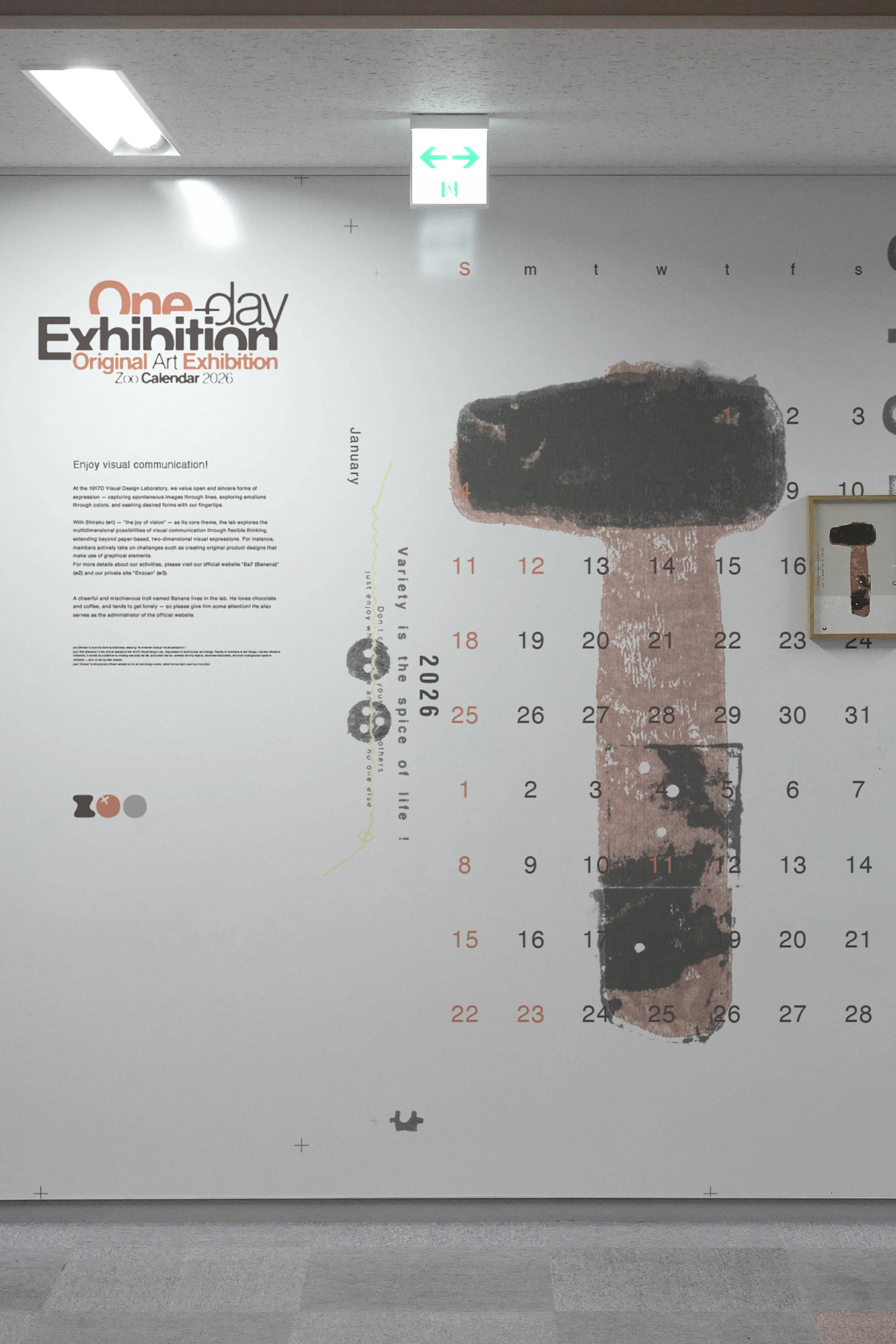 1017D便り 2025-12-08 banana 1017D便り 「鞴の会」に出品し、リハビリ制作の為にカレンダーに落とし込んだビジュアルワークの「原画展」( dcl wall gallery)を構想中。イメージ通りの展示が可能か?スケール感は?照明イメージは?などと仮想シュミレーション(by Adobe Photoshop)をしています。グラフィック分野2年生は「学外展」。4年生は「卒業制作展」を年明けに控えていますが、空間の中でビジュアルワーク作品がどのような見え方をするのか?と展示前にイメージを確認しておく事はとても大切に思います。搬入当日、イメージと違い過ぎてガッカリしない為にもしっかりとした仮想シュミレーションをお勧めします。