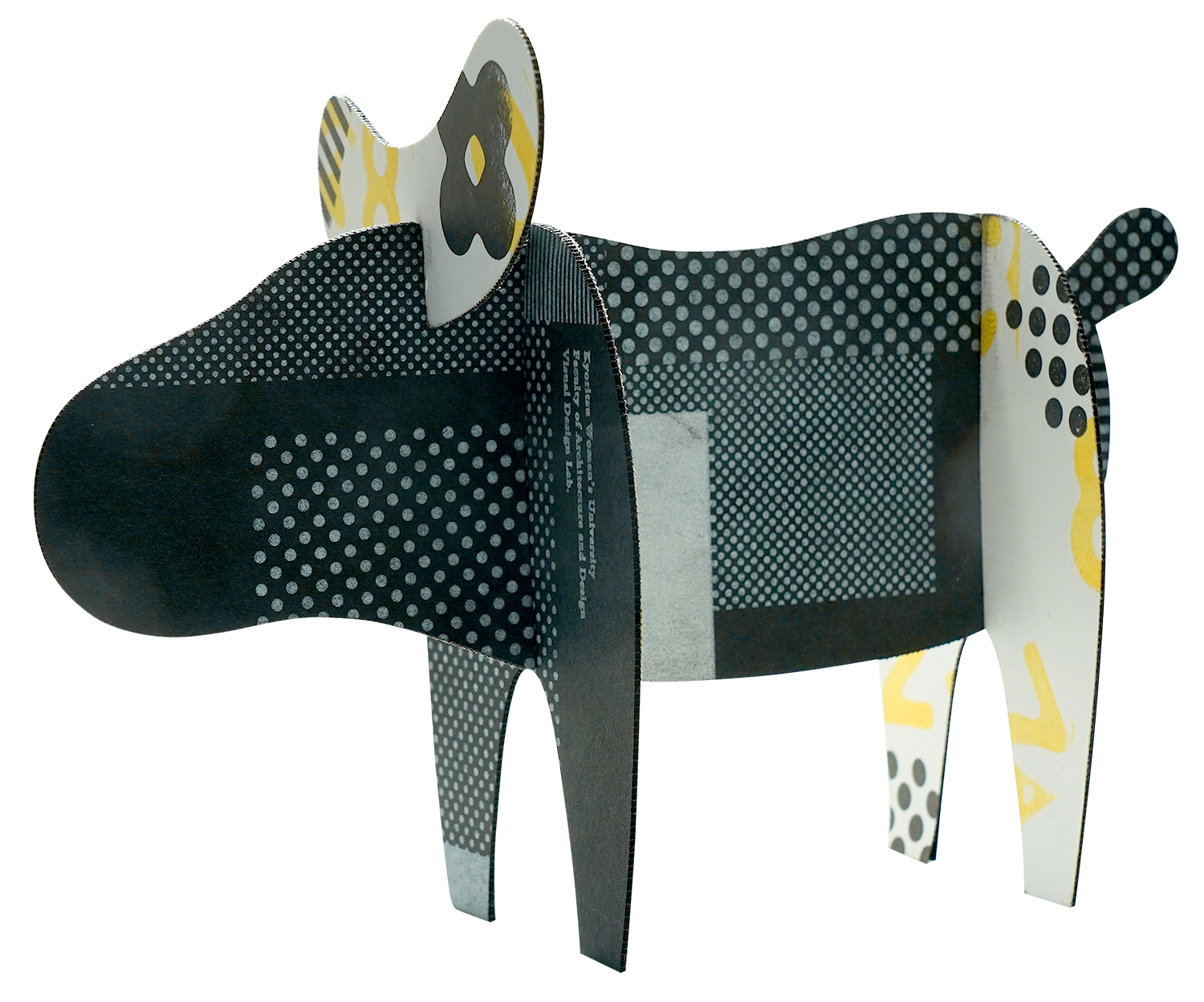 With Shiraku (※1) — “the joy of vision” — as its core theme, the lab explores the multidimensional possibilities of visual communication through flexible thinking, extending beyond paper-based, two-dimensional visual expressions. For instance, members actively take on challenges such as creating original product designs that make use of graphical elements.
